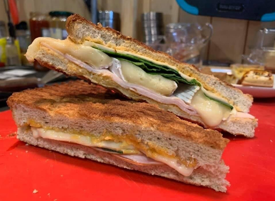 Elevate your café experience with our Ham and Turkey Focaccia Sandwich, a gourmet delight that unites savory ham, succulent turkey, and creamy brie cheese between slices of fresh, fragrant focaccia bread.