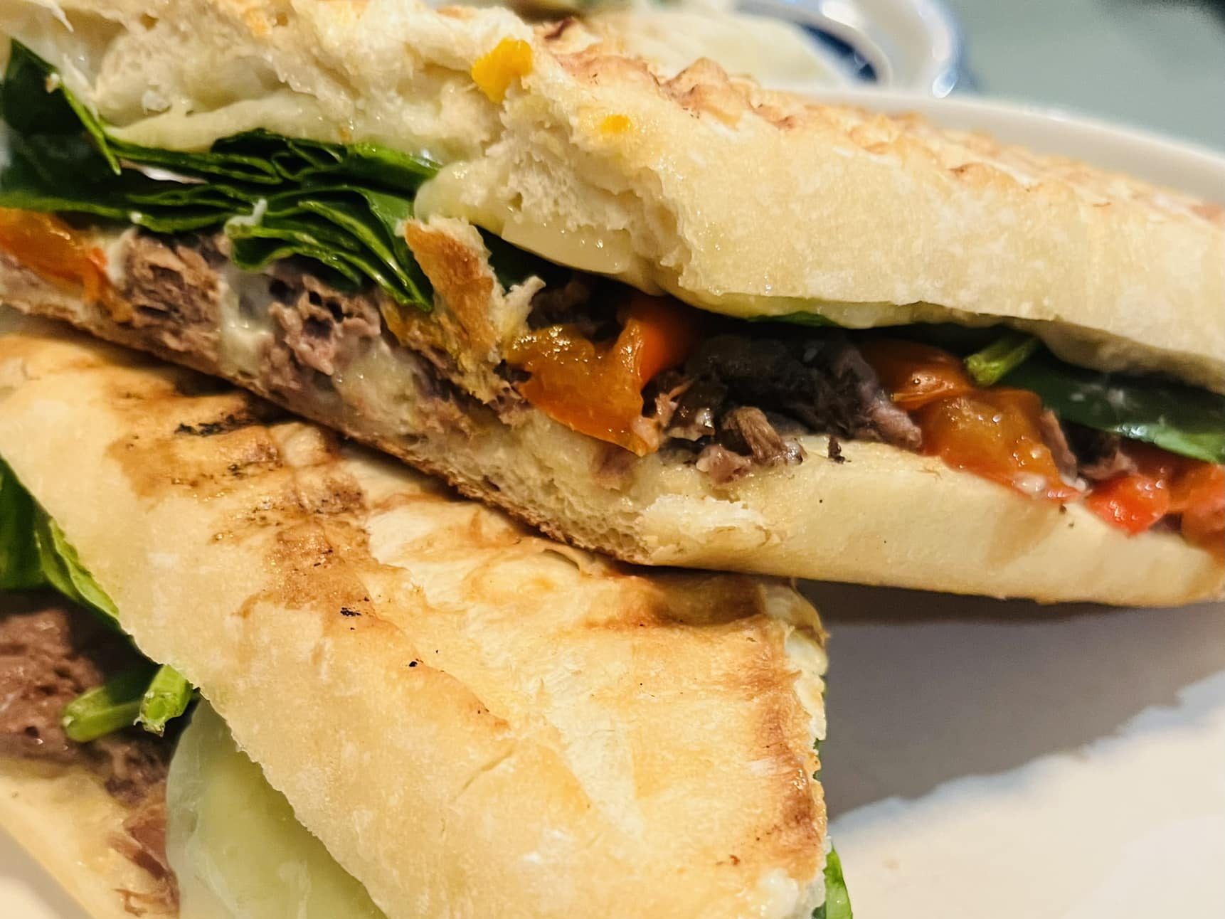 Indulge in the irresistible flavors of our Roast Beef Baguette. Tender roast beef, roasted peppers, fresh spinach, creamy mayo, and a tantalizing layer of cheese come together in perfect harmony.